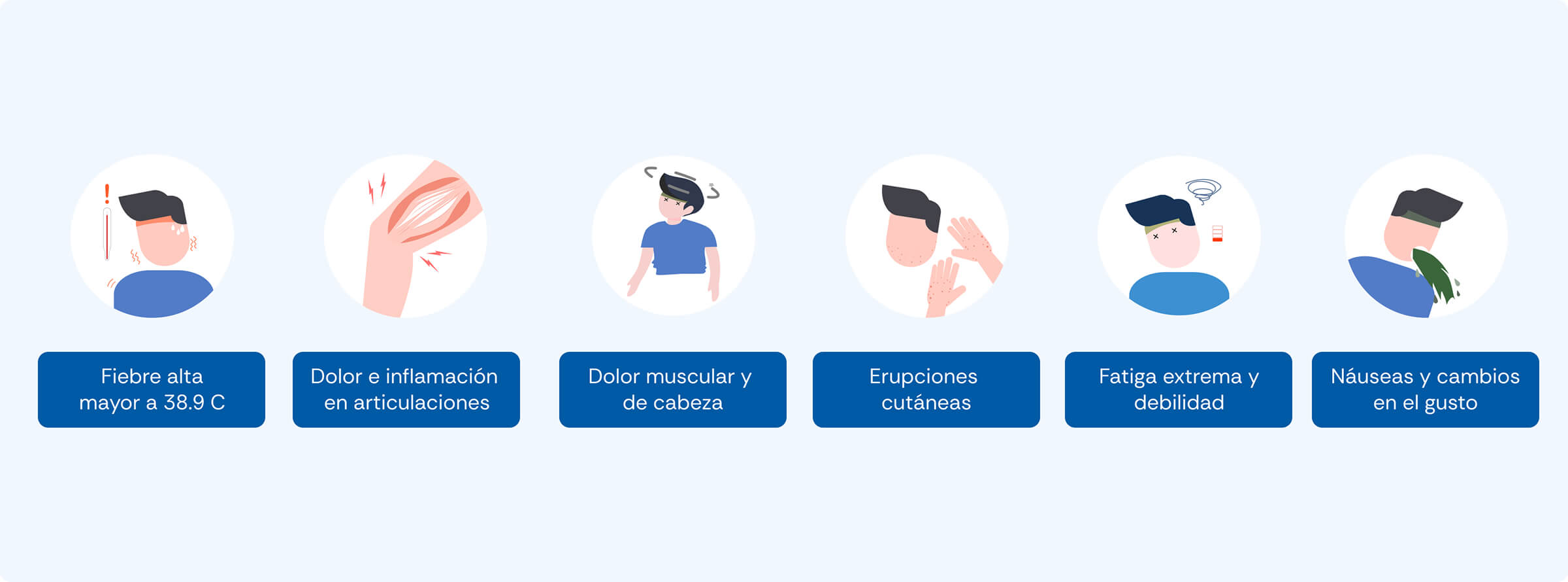 Los síntomas del chikungunya suelen aparecer de forma repentina y pueden variar en intensidad de una persona a otra. En algunos casos se presentan varios al mismo tiempo, lo que puede afectar de forma significativa la rutina diaria. Aunque la fiebre y el malestar general suelen mejorar con los días, el dolor articular puede persistir por más tiempo y convertirse en el signo más característico de la enfermedad.