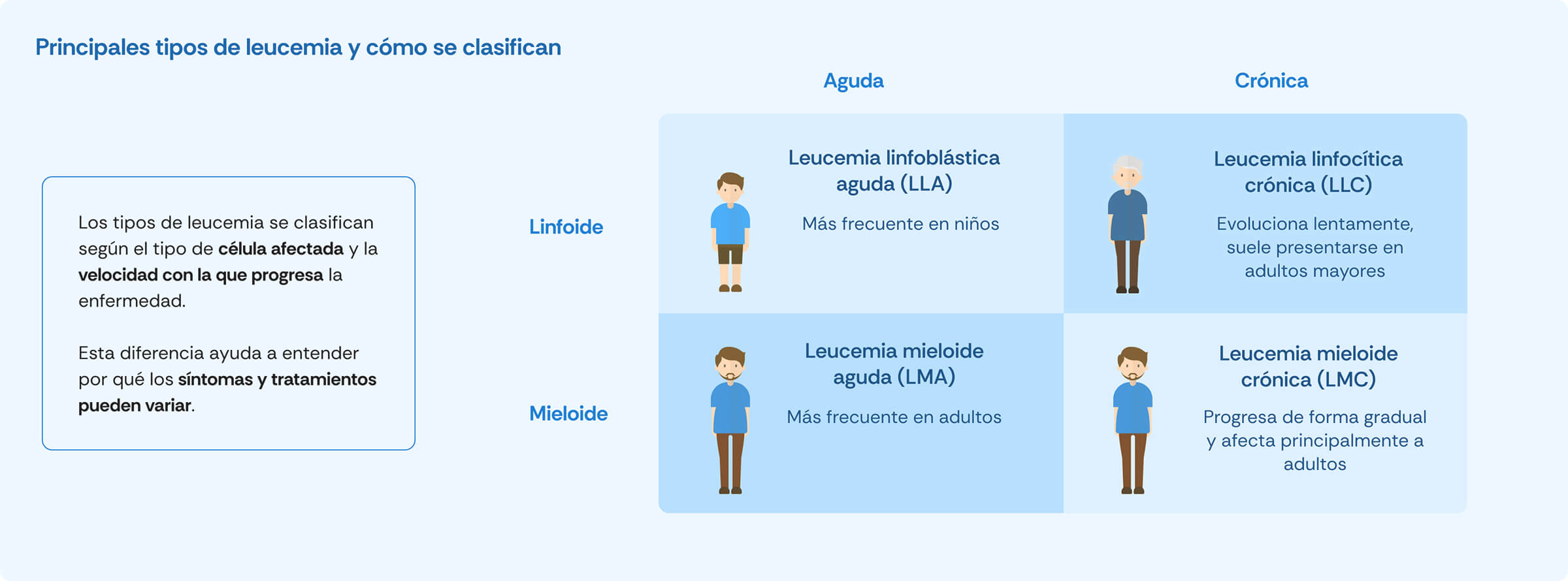 La leucemia es un tipo de cáncer que afecta la sangre y la médula ósea, el tejido donde se producen las células sanguíneas. Ocurre cuando los glóbulos blancos crecen de forma descontrolada, se acumulan y dejan de cumplir correctamente su función de defensa, afectando el equilibrio normal de la sangre.