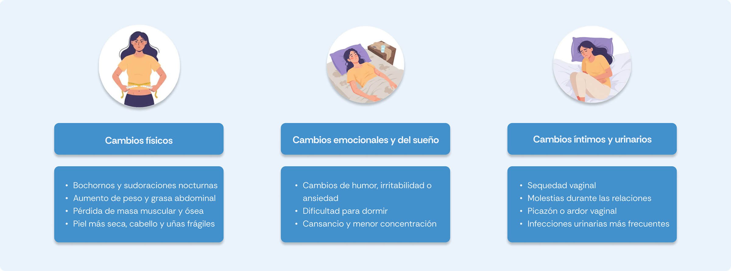 Durante la menopausia, el cuerpo puede manifestar distintos cambios. No todas las mujeres presentan los mismos síntomas ni con la misma intensidad, pero los más frecuentes incluyen: