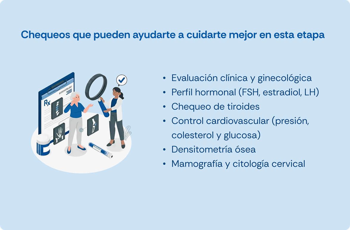 No existe un único tratamiento para la menopausia. Las opciones varían según la intensidad de los síntomas, la edad, los antecedentes de salud y las necesidades de cada mujer. Por eso, el abordaje debe ser individualizado y siempre definido junto a un profesional de salud, quien evaluará qué alternativas son más adecuadas para aliviar los síntomas, cuidar la salud a largo plazo y mejorar la calidad de vida. Estas son algunas de las alternativas que pueden considerarse como parte del acompañamiento médico durante esta etapa: