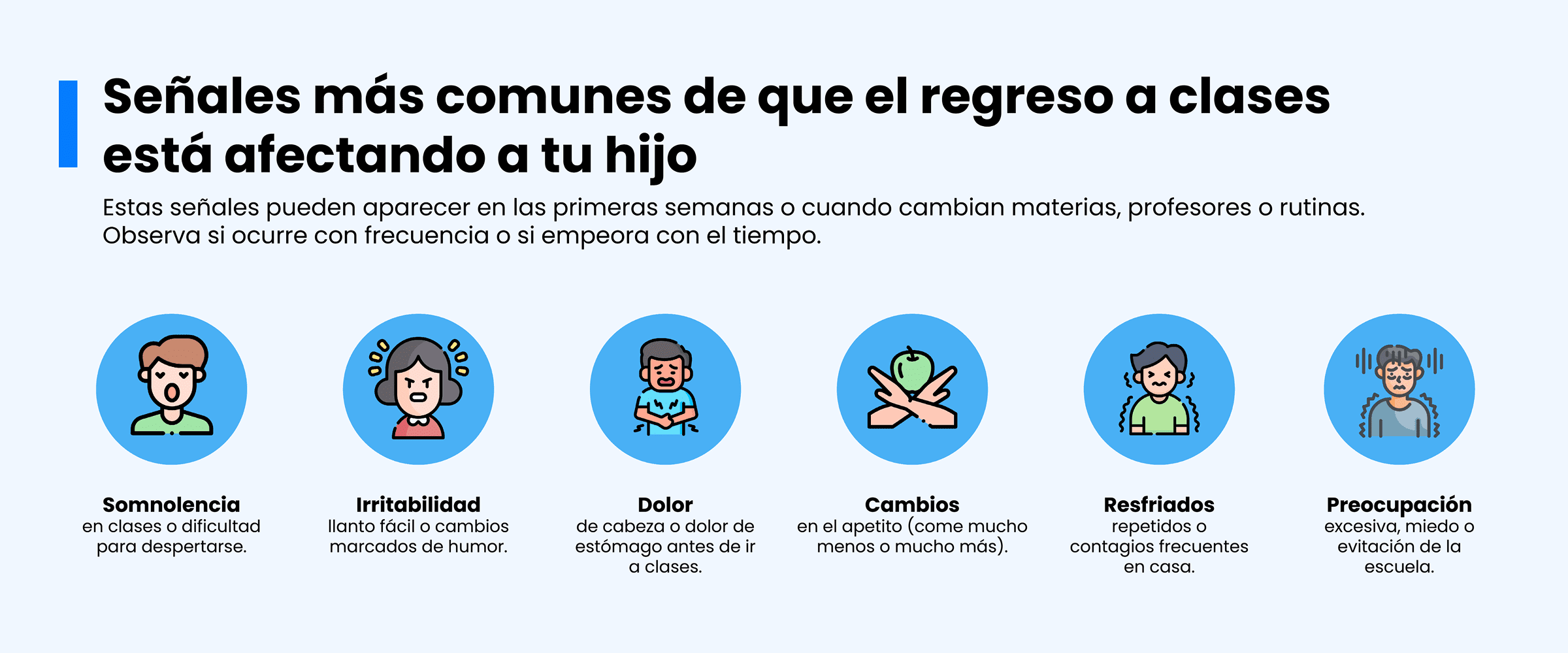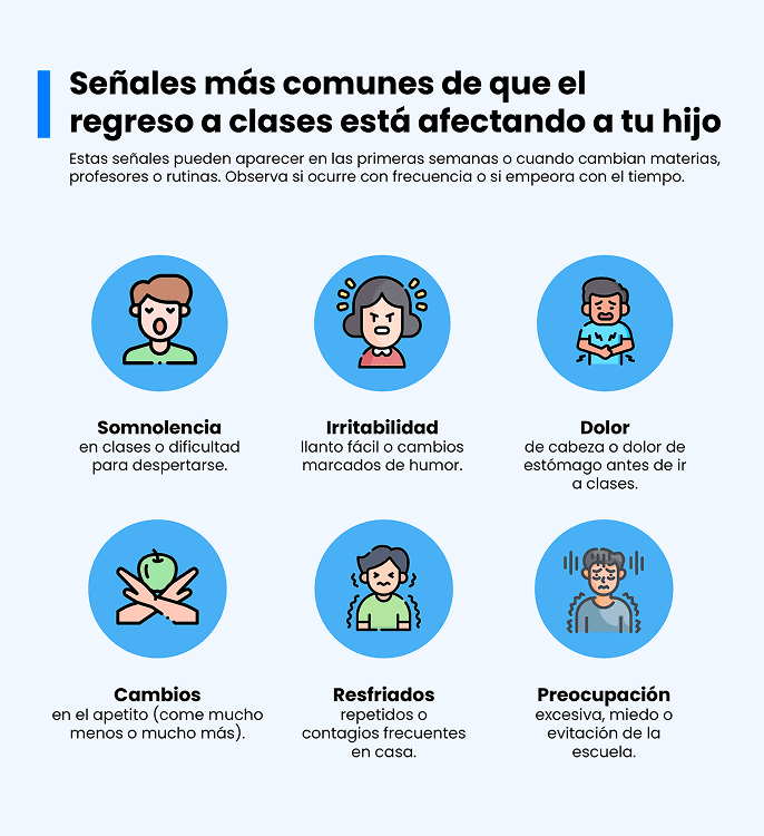 - Acompaña la salud emocional. Habla con tu hijo sobre lo que espera, lo que le preocupa y qué puede hacer si se siente abrumado. Si notas ansiedad persistente, es válido pedir una evaluación profesional.