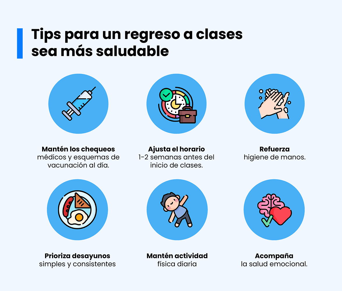 Si te organizas con tiempo, el regreso a clases puede ser una oportunidad para fortalecer hábitos saludables y prevenir problemas comunes de la etapa escolar.